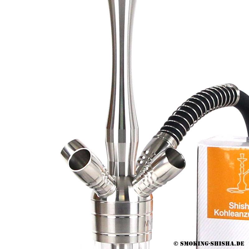 Der Diffusor kann abgenommen werden, somit entscheidest du, ob du starken Durchzug oder dezentes Blubbern hast. Du kannst die Shisha sofort nach dem Auspacken einweihen, weil bei diesem Einsteiger Set alles dabei ist, was eine Shisha an Zubehör braucht. Einfach die Kohle auf den Kohleanzünder legen, ca. 8 Minuten warten, und schon kanns losgehen.